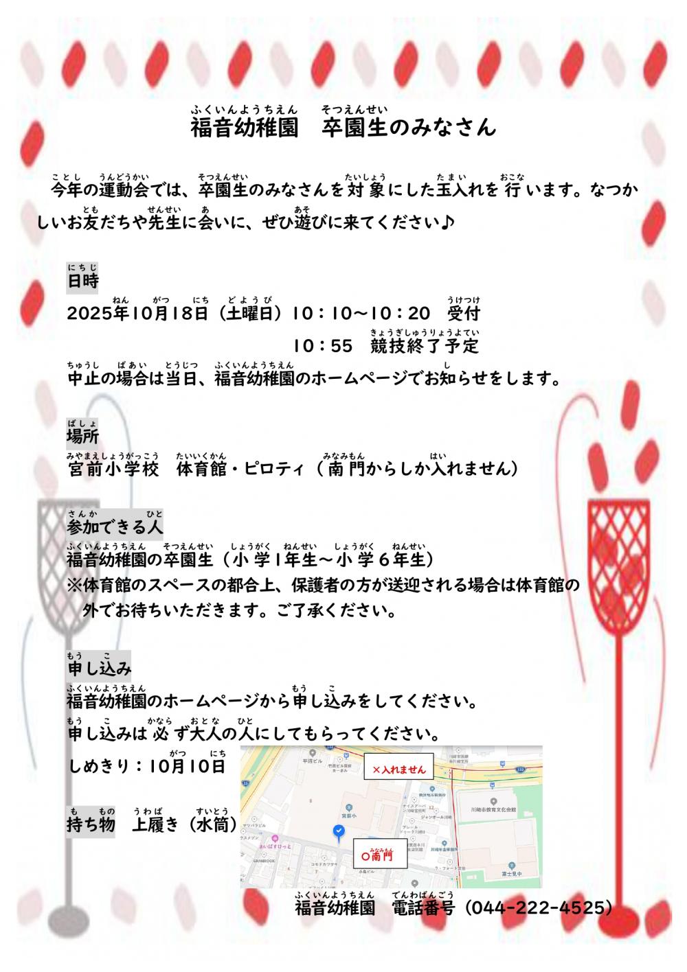 2025.9.12(金)【福音幼稚園の卒園生の保護者の皆様へ】